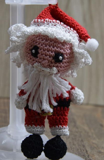 Noël approche, j'ai continué dans les bambolas avec un père Noël. C'est un modèle de Ninie Crochet.